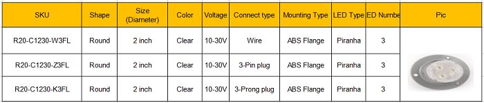 2-inčni okrugli Piranha LED 3 Diodes Truck Trailer Dome Interijer stropna svjetla